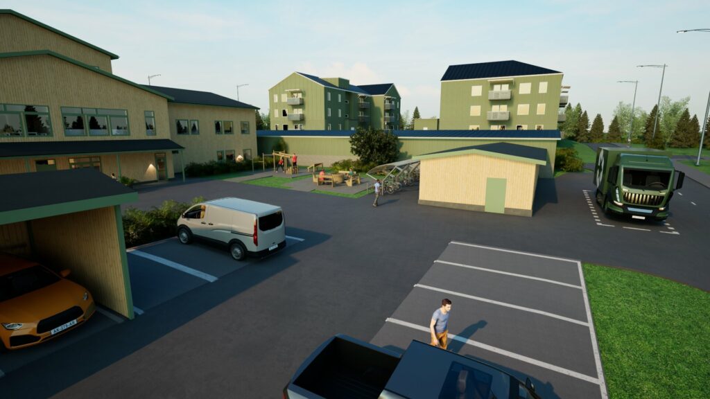 Konceptet för det särskilda boendet har varit att skapa en trygg och balanserad miljö för att värna om de boende i området. Inspiration av befintliga byggnader i Kiruna, en dov färgsättning, samt gröna gårdsrum som bjuder in till gemenskap, lek och avkoppling, skapar ett kvarter som möter Kirunas historia och känns både samtida och välbekant.